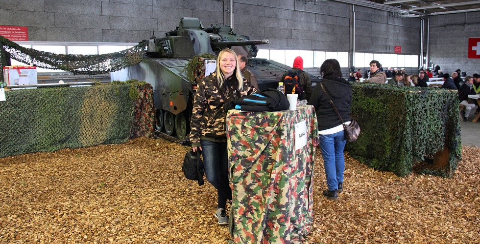 Nach dieser Demonstration gab es in den Hallen Kaffee und Dessert, was wie bereits das Mittagessen von der PzS 21 offeriert wurde. Lediglich Getränke wie Rivella, Bier oder Wein mussten an der, eigens von den PzGren aufgebauten, Getränkebar bezahlt werden.