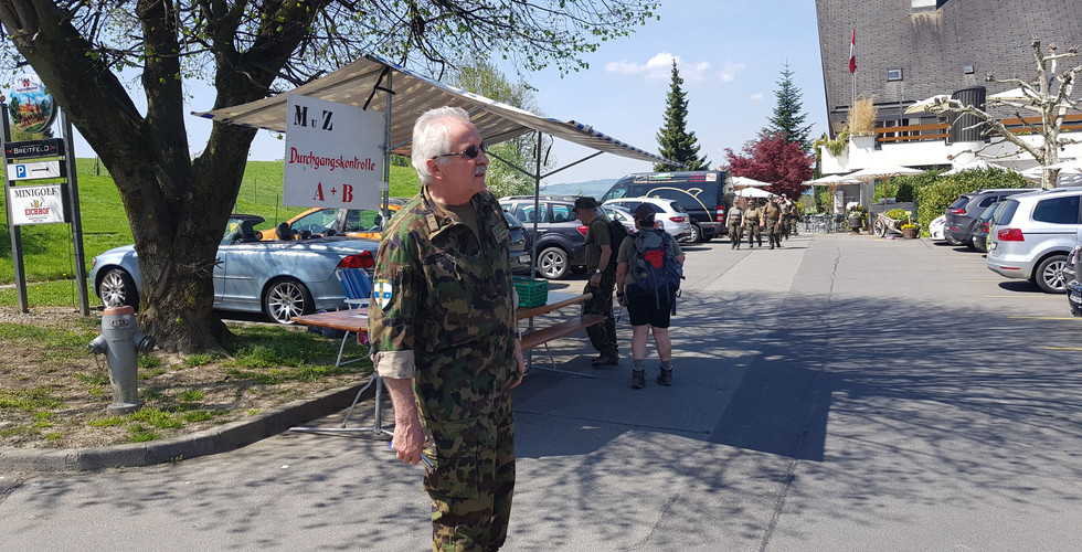 Um 1300 Uhr machten wir uns auf den Weg zum Shuttle, welches uns von Zug zum Startpunkt nach Immensee brachte. Im strahlenden Sonnenschein machten wir uns auf den Weg zurück nach Zug. Die Strecke von Immensee bis zum ersten Kontrollpunkt war für uns alle wahrscheinlich das anstrengendste Stück des ganzen Marsches, da in praller Sonne mehrere Steigungen in schattenlosem Gelände bewältigt werden müssen.